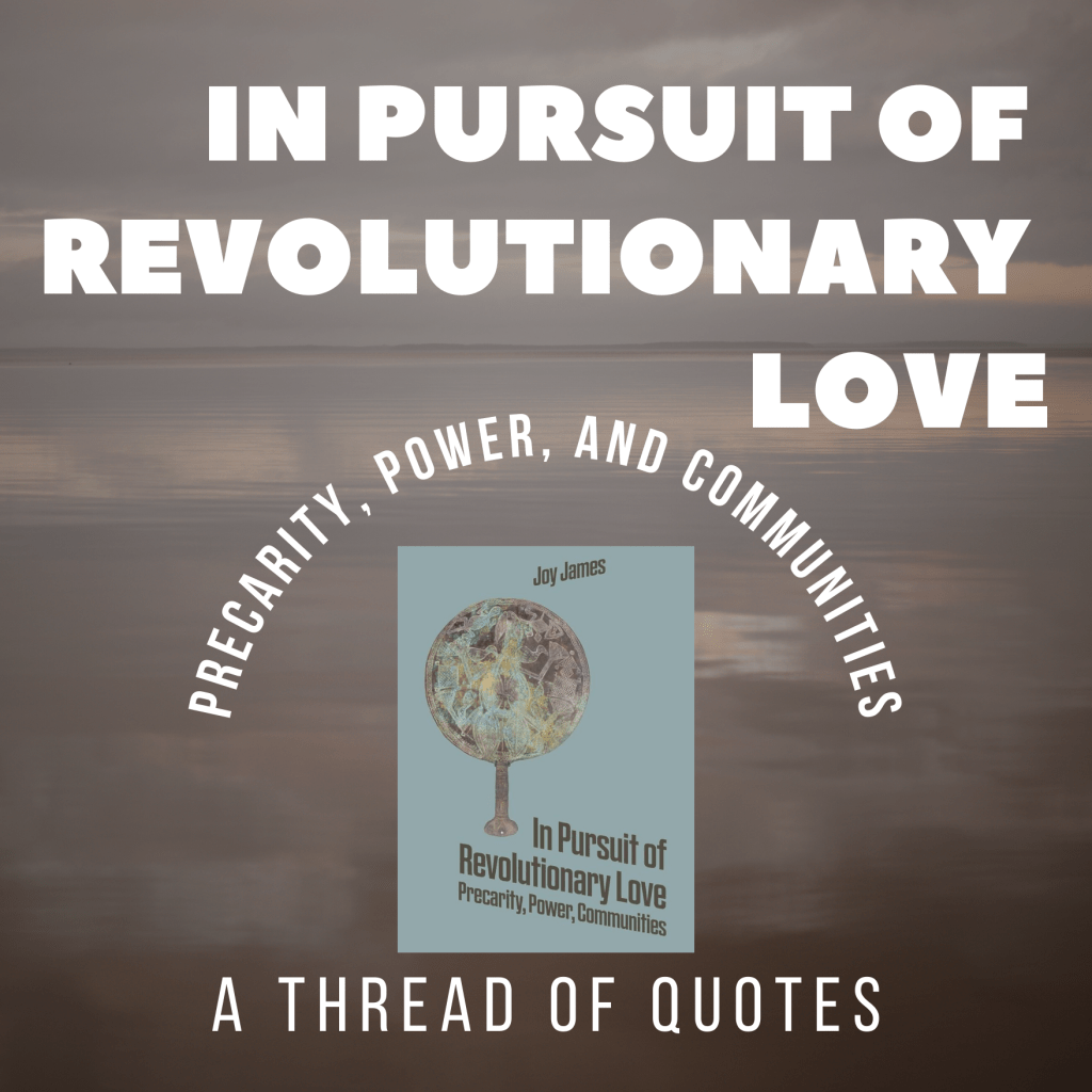 bell hooks defines love as an action and an intention, i.e. “there is no love without justice.” Joy James explores revolutionary love as a form of socio-economic death, a sacrifice through rooted principles.